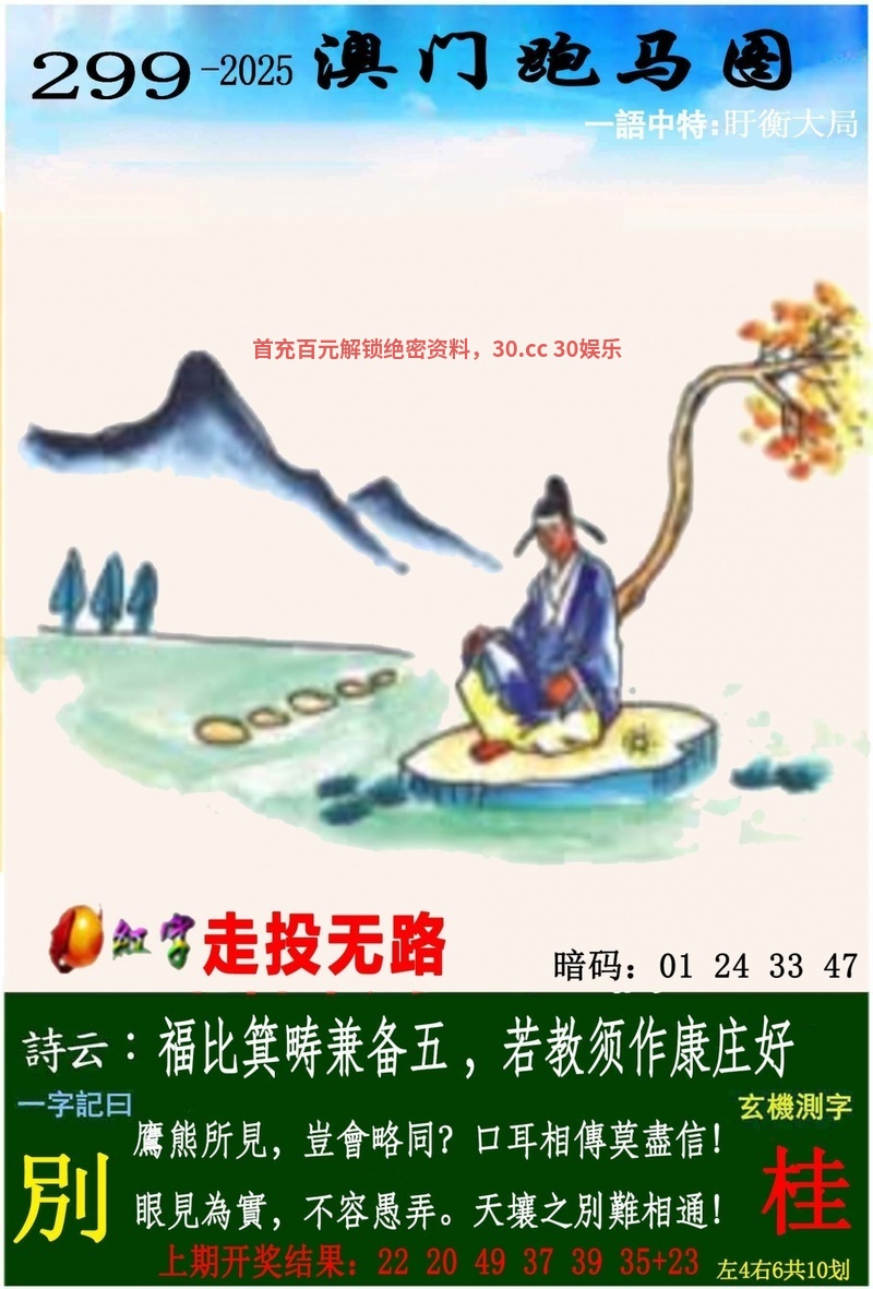 | 300期:一字記曰: 不求上進,宜于發憤,一生之計在於勤 勿要比較,不要过問,各有前因莫怨運 |