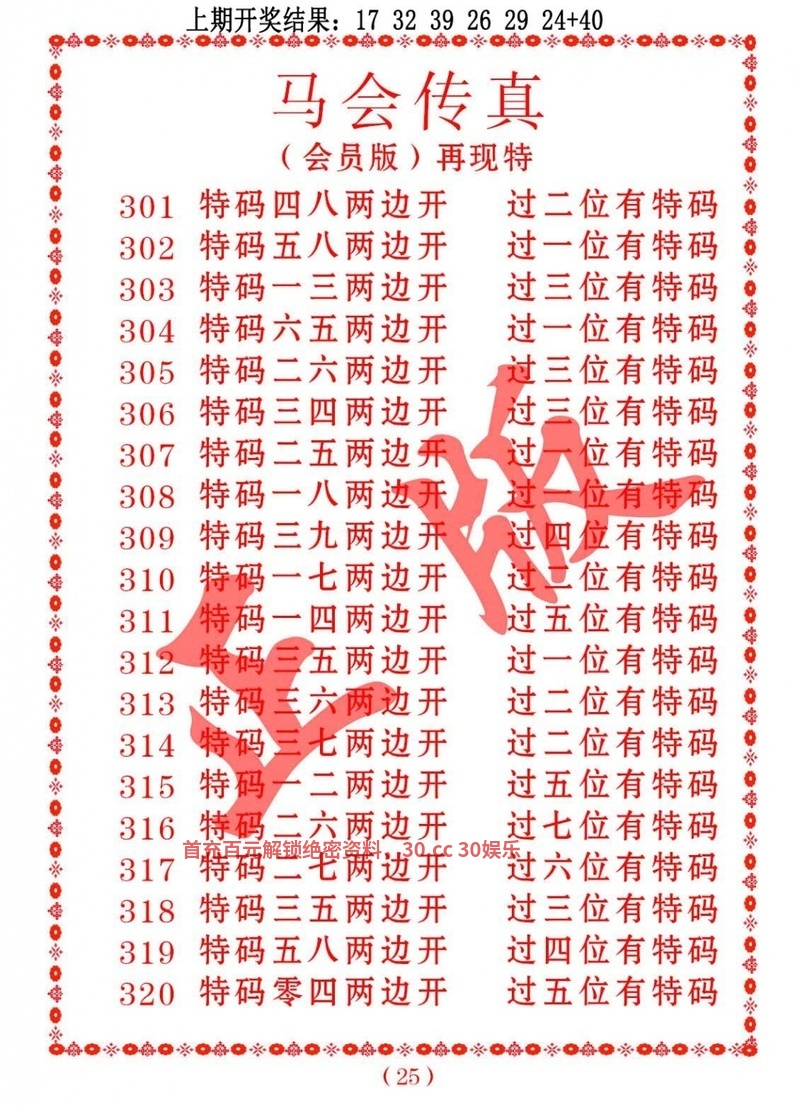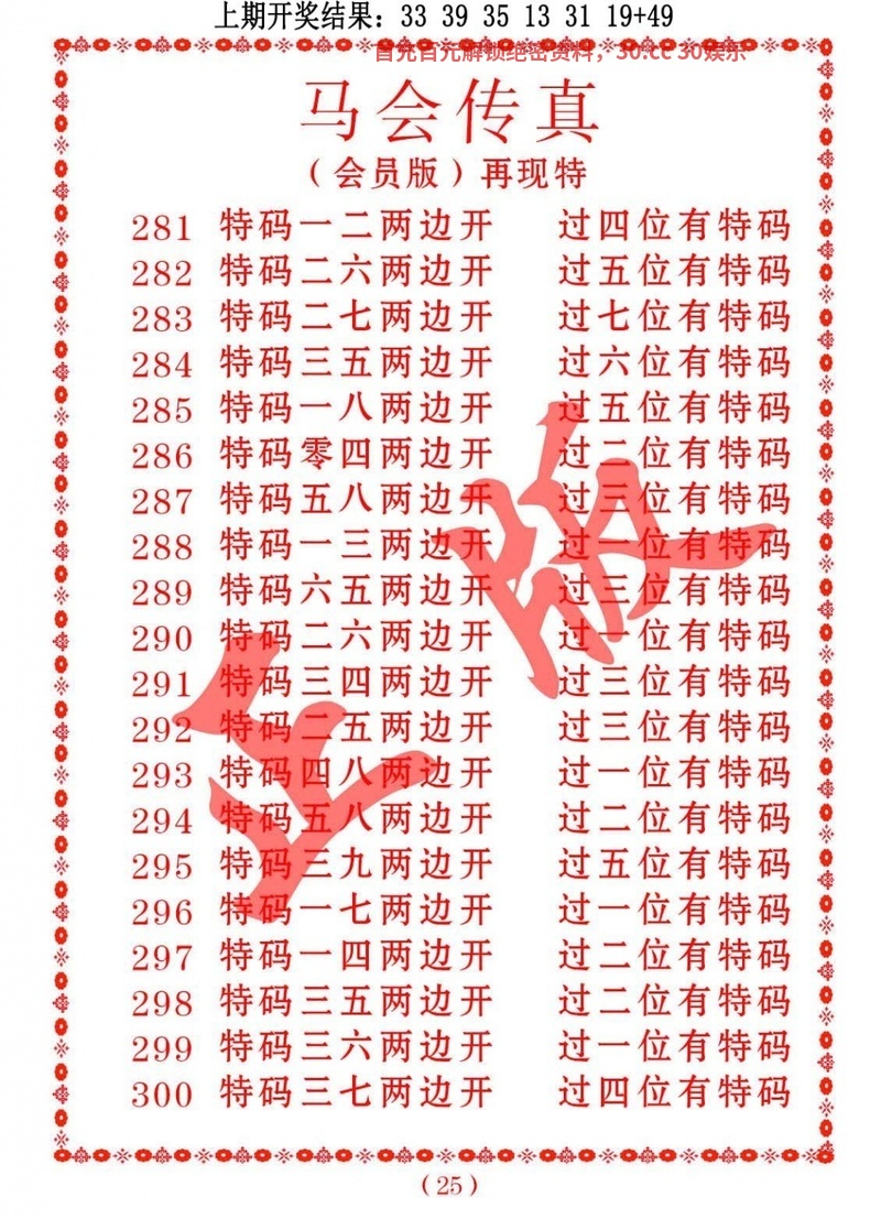 | 299-301期:《三期必中》中1期 【牛兔猴马】 |
