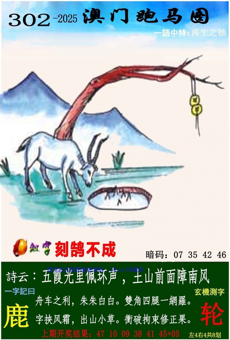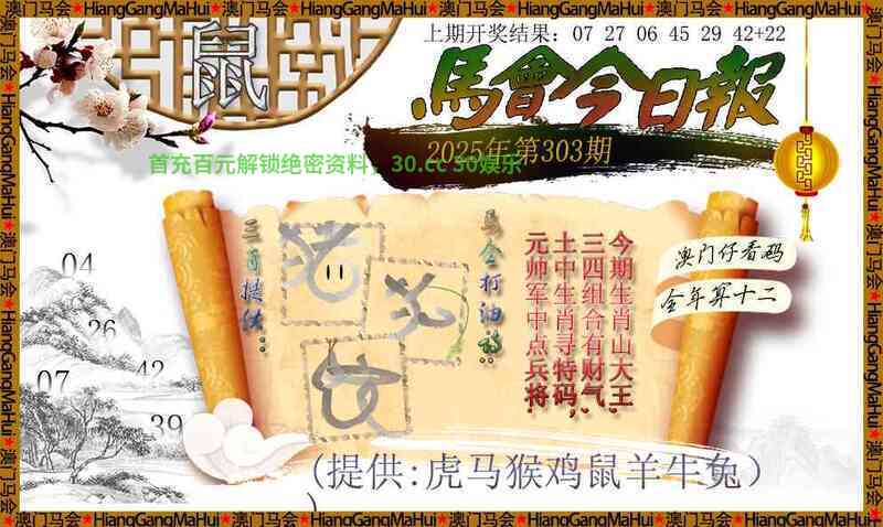 | 302期: 兔【03.39】马【24.48】猴【10.34】 鸡【09.33】龙【14.38】蛇【01.37】 |